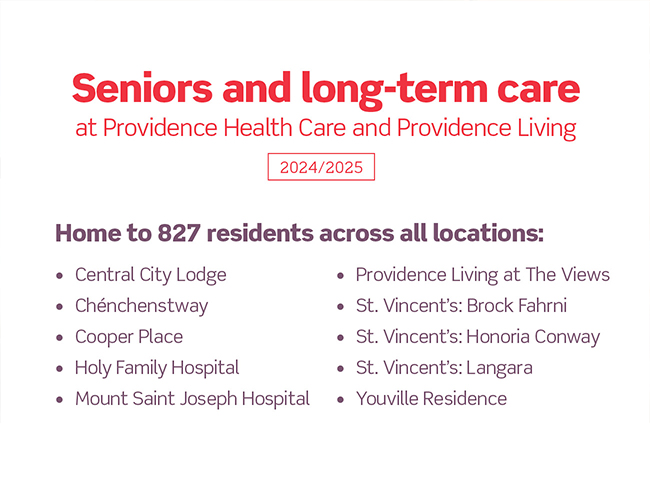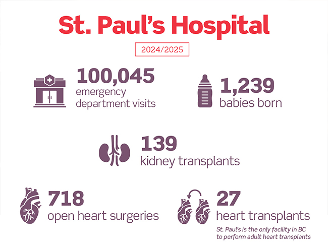 St. Paul’s Foundation raises funds to support compassionate, inspired care at Providence Health Care’s 18 sites across BC, including St. Paul’s Hospital, and at Providence Living’s long-term care homes. Together, we care for tens of thousands of people each year, from newborn babies to seniors in long-term care. Learn more.